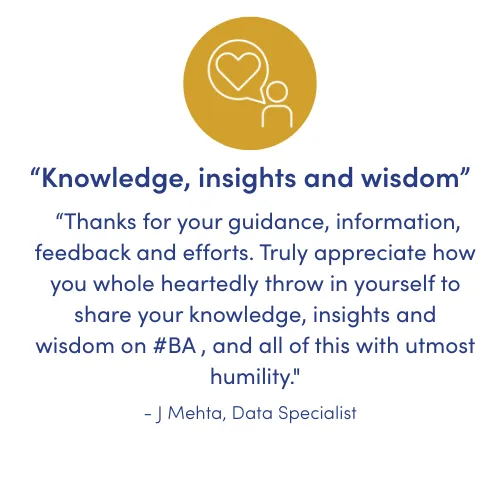 Personalised coaching and mentoring - whether you're looking to become a business analyst or a business owner/professional wanting to learn practical business analysis skills and tools.